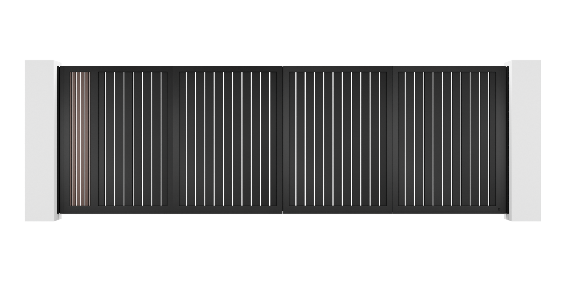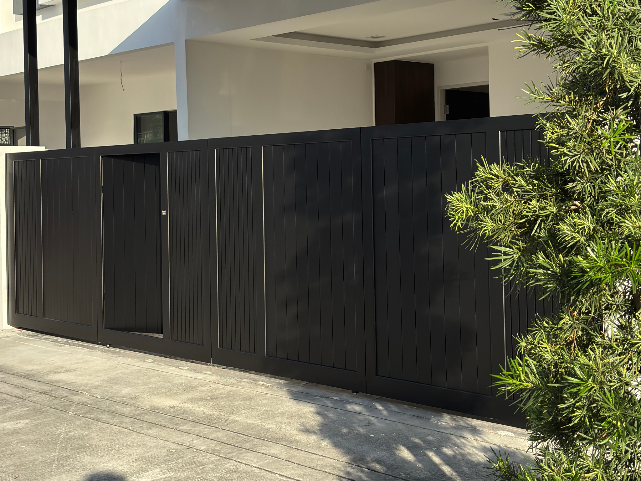 Because the panels are mounted on the internal part of aluminium frame structure for basic designs, therefore, the small door blends seamlessly with the rest of the gate. This creates a clean, hidden look — at a glance, you might not even notice there’s a small door there.